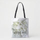 Mãe do saco de presente branco do noivo com design floral branco bonito que inclui um peixe-estrela grande. Personalize o texto da "mãe", conforme necessário, se quiser uma bolsa para a avó, irmã, tia ou filha. **Certifique-se de adicionar o nome dela na parte traseira desta mala.