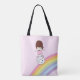 Design bonito e colorido dos desenhos animados Lesley que surfa abaixo de um arco-íris em um Marshmallow irritado! Colorido, design do kawaii. Customizável!