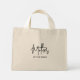 Bolsa de mãe da noiva casual. Grande texto em escrita cursiva casual com pequeno texto em bloco tradicional.