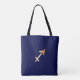 Para nossa coleção monocromática do zodíaco nós criamos este design gráfico ilustrativo da sacola do zodíaco profundo feito sob encomenda um--um-amável bonito dos azuis marinhos. A sacola caracteriza nossos próprios trabalhos de arte astrológicos detalhados interpretados original do zodíaco desenhado mão do Sagitário em uma cor profunda dos azuis marinhos. O texto à moda do zodíaco do Sagitário é incorporado junto com os trabalhos de arte do Sagitário e o símbolo de harmonização da constelação do zodíaco do Sagitário para criar uma parte bonita coesiva do design.