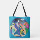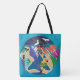 Meu design original que descreve um mundo tropical imprimiu All Over em uma sacola do impressão que caracteriza uma baleia que quebra a superfície, dois papagaios do Macaw, um chocando de um ovo do mundo, um papagaio de Sun Conure, uma flor da íris, um coração flamejante, e duas mãos que gotejam com pintura.