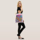 A turquesa brilhante, o azul, o rosa quente, o roxo e o amarelo fazem um design fantástico neste bolsa. Irá com apenas aproximadamente qualquer coisa. O design é adaptado da pintura feita pela alegria Lomenick.
