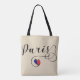 Bolsa de compra do Coração de Paris / Saco de Tote. Seja você de Paris, tenha morado em Paris, visitado Paris ou simplesmente ama tudo o que se relaciona com a cidade excelente de Paris! Este design com script de na moda apresenta a bandeira de Paris em um coração.