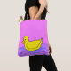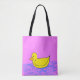 O design neste Bolsa cor-de-rosa apresenta um pato amarelo fofo.