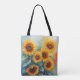 Os ouros quentes dos girassóis trazem uma alegre e ensolarada vibração ao seu carregar do dia a dia. Projetado para conforto com alças resistentes que se sentam facilmente no ombro. Transforme as tarefas comuns em uma experiência na moda com este elegante bolsa floral. Criado com tecido de canvas de qualidade para uso duradouro e manutenção fácil. Saia na multidão com um padrão único de girassol de cor d'água que é a tendência e o eterno.