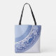 Uma bela bolsa de tote azul selvagem para sua conveniência diária! A fronteira clássica Blue Willow com linhas puras graciosas circunda o saco com espaço para personalização.