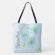 Saco de tote grande do Designer com um fundo azul claro do céu que pode ser alterado para sua cor favorita. Na moda com um bolsa floral moderno com design de arte floral. O texto pode ser personalizado para você ou um presente personalizado, ou o texto pode ser removível.