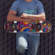 Pequenas criaturas tribais esquisitas de vara-tótem abstrato, design de skate único