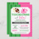 Tutus divertidos e touchdowns de convites de festas de aniversários temáticos.