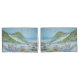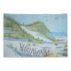 Criança jovem andando em uma praia arenosa e dunas de areia, pintura aquosa