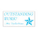 Este inspirador design de carimbo apresenta a inspiradora mensagem "OUTSTANDING WORK!" e o nome de um educador personalizado. Ele também apresenta um ícone decorativo de estrela. Ele poderia ser usado por um professor de escola, educador ou orientador ao marcar trabalhos, para indicar que um aluno fez bem.