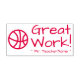 Este inspirador design de carimbo apresenta a mensagem elogiante "Trabalho Excelente!" e um nome de educador personalizado. Ele também apresenta um ícone decorativo de basquete. Pode ser usado por um professor ou educador quando marcar tarefas, para reconhecer que um aluno fez bem.