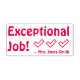 Este design de carimbo motivador apresenta a mensagem de elogio "Trabalho Excepcional!" e um nome de professor personalizado. Ele também apresenta um ícone de marca de seleção decorativa. Ele poderia ser usado por um professor de escola, educador, instrutor ou orientador ao marcar tarefas, para indicar que o aluno fez bem.