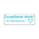 Este inspirador design de carimbo apresenta a mensagem "Trabalho excepcional!" e o nome de um professor, educador ou professor personalizado. Também apresenta um ícone de troféu decorativo. Ele poderia ser usado por um professor de escola, educador, instrutor ou tutor ao marcar tarefas, para reconhecer que o aluno fez bem.