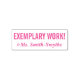 Este design de carimbo positivo apresenta a mensagem "EXEMPLARY WORK!" e um nome de tutor personalizado. Ele poderia ser usado por um professor, educador ou orientador ao formando trabalho estudantil, para indicar que um aluno fez um trabalho excepcional.