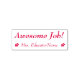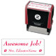 Este design de carimbo de borracha encorajador apresenta a mensagem inspiradora "Trabalho Incrível!" e o nome personalizado do educador. Ele também apresenta um ícone de flor decorativo. Pode ser usado por um professor, educador ou tutor ao marcar tarefas, para reconhecer que o aluno fez um bom trabalho.