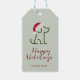 Esta simples etiqueta de presente apresenta um contorno festivo de um cão vestindo um chapéu de Papai Noel. O cachorro traz um pouco de alegria de férias para seus presentes. As palavras "Felizes Feriados" são elegantemente impressas por baixo do cão, fazer esta etiqueta como uma adição perfeita a qualquer presente durante o período de férias. O simples design adiciona um toque quente ao seu embrulho de presente.