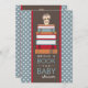 Uma coruja pequena adorável é empoleirada sobre uma pilha de livros nas máscaras de vermelho e do azul neste convite bonito para um chá de fraldas do trazer-um-book. O texto na parte traseira tem o texto da amostra para pedir que os convidados igualmente tragam a história das suas crianças favoritas para ligar Mamã-à-estar em criar a biblioteca do bebê. No marrom na moda e no azul da sarja de Nimes com fundo do teste padrão de bolinhas, este design bonito é certo satisfazer todas as mamães novas. Igualmente disponíveis estão as etiquetas do bookplate para incluir no convite para o cada convidados assinar e etiquetar seus presentes do livro.