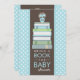 Uma coruja pequena adorável é empoleirada sobre uma pilha de livros nas máscaras de azul e de verde neste convite bonito para um chá de fraldas do trazer-um-book. O texto na parte traseira tem o texto da amostra para pedir que os convidados igualmente tragam a história das suas crianças favoritas para ligar Mamã-à-estar em criar a biblioteca do bebê. No marrom na moda e nos azuis bebés com fundo do teste padrão de bolinhas, este design bonito é certo satisfazer todas as mamães novas. Igualmente disponíveis estão as etiquetas do bookplate para incluir no convite para o cada convidados assinar e etiquetar seus presentes do livro.