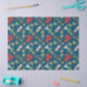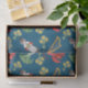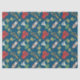 Uma folha do lenço de papel, com uma fileira de emblemas de Galês, de uma menina no vestido tradicional de galês, de um dragão vermelho, de um grupo dos alho-porros, de uma harpa e de um grupo dos daffodils. Este teste padrão pode ser ajustado para caber alguns tamanho e peso de lenço de papel.
