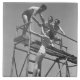 Dois casais no trampolim, (B&W), marcas da opinião de baixo ângulo | George | AssetID: 72417892