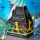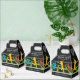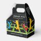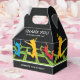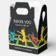 O obrigado aniversário de criança é a favor de caixas com um pano de fundo preto, tribunais trampolim, crianças pulando e voando pelo ar, e um obrigado que você modelo é fácil de personalizar.