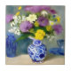 Vaso Tranquilo de Flores Impressão. Transforme seu espaço em um retiro tranquilo com este vaso de flores estilizado de aquarela. Azuis suaves, amarelos e púrpuras criam um ambiente inquieto.