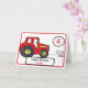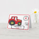 Quarto cartão de aniversário com um trator vermelho e um cão. Este cartão ilustrado é perfeito para pais ou avós darem a um filho/neto quando ele faz quatro anos. Este cartão diz, "Parabéns" no exterior e inclui espaço para a idade e o nome do menino. A mensagem interna também pode ser personalizada.