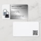 Dois cadeados em branco com prata polida/painel metálico, Cartão de visita profissional. Ideal para um Locksmith, Lock Smith, Proteção Doméstica, Proteção de Dados, Cutter / Corte Chave, Empresa Segura, Lock Smith, Proteção de Dados, Carro / Arquivo Automático de Alarmes, CCTV, Sistemas de Entrada, Fissura e Segurança Seguras e muitos outros profissionais de ferragem. O texto pode ser alterado em fonte, cor, tamanho e localização clicando no botão 'PERSONALIZAR TI'. Observe que nomes de empresas longos exigirão um redimensionamento. Obrigados de visita.