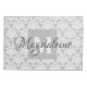 Este belo travesseiro apresenta uma cor damasco branca clássica sobre um fundo de cinza. O design é personalizado com uma letra inicial de monograma, assim como um nome personalizável. Perfeito para decorar qualquer quarto, apartamento ou quarto. Um presente de excelente para uma garota indo para a faculdade que quer um estilo clássico mas elegante em sua cama.
