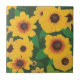 Pintura brilhante de um recheio de girassóis amarelos com folhas verdes, em acrílico, impressas em triviais.