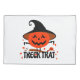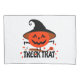 Celebrar o Halloween de uma forma assustadora com esta trabalho de arte da Pumpkin Treck Trat com uma abóbora super fofa com um machado adagger e um fantasma. Trabalho de arte veste um chapéu, acrescentando um olhar de mistério à figura fantasma.