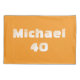 Fundo laranja colorido moderno com letras brancas grandes e elegantes para seu próprio nome e número. Esta obra de arte é para você que gosta de esporte.
