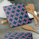 Padrão elegante, na moda e sofisticado da marroquina em azul marinho, azul bebê e vermelho. Presente moderno e moderno, perfeito para o amante do trabalho de latência em sua vida.