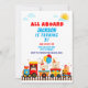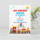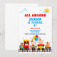 Todos a bordo para diversão de aniversário! Este convite de aniversário temático de trem adorável apresenta animais de circo coloridos, balões alegres e texto em negrito — perfeito para crianças pequenas.