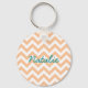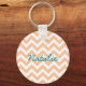 Hip e moderna Trendy Chevron Chaveiro. Este legal chaveiro apresenta um padrão de zague em ziguezague em coral e branco. Adicione texto a este design para lhe dar um toque pessoal.