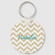Hip e moderna Trendy Chevron Chaveiro. Este legal chaveiro apresenta um padrão de zague em ziguezague em bege e branco. Adicione texto a este design para lhe dar um toque pessoal.