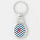 Hip e Chaveiro de Trendy Chevron Metal moderno. Este legal chaveiro apresenta um padrão de zag em zague em azul e branco. Adicione texto a este design para lhe dar um toque pessoal.