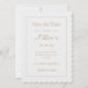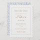 Chic, fresco e jovem com um tom lúdico. Esta placa Save the Date (Salvar data) apresenta um conjunto de fontes modernas e de tendências, em um plano de fundo off-white. A parte traseira do cartão veste uma jaqueta azul floral divertida. Cheeky e divertido. Personalize para fazê-lo seu.
