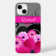 © Sunny Mars Designs. Hibiscus: Fone Cobrir - Girly fuchsia floral, personalizável capas com design floral de hibisco rosa bonito em uma cinza de luz ou cinza. Personalize-o adicionando seu próprio nome ou outro texto nele. A cor de fundo pode ser alterada pressionando o botão laranja 'personalizar'.