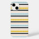 Bela capas de iphone com listras brancas, pretas, ouros amarelas, azuis e pêssego.