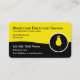 Cartão de visita de serviços eletrônicos modernos em um design único de tendências com emblema de lâmpada de tema eletrônico e layout simples que você pode personalizar on-line. Projetado para um eletricista licenciado, contratado elétrico ou um profissional que trabalha em residências ou em negócios. Impresso no estoque de cartão de visita revestido por UV de acabamento mate de alta qualidade.
