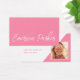 Influencer or blogger profile business cards with your name on the front in a trendy handwritten script font. Add your photo, social media handle and website on the back and customize the QR code. Pink and white design. Colors can be customized with the design tool.