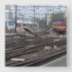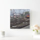 Trens de passageiros que chegam ao relógio da estação ferroviária