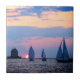 Três belos veleiros e farol no pôr do sol, em azulejo cerâmico resistente. Ideal para decoração de casa, ou para adicionar joias, guardar tampa da caixa!