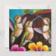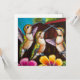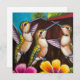 Três beija-flores deslumbrantes brincam entre algumas flores brilhantes, uma adorável pintura a óleo com um céu azul brilhante. Esta não precisava de legenda, mas pode editá-la para adicionar uma, se desejar. Brilhante e elevador.