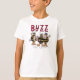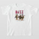 Três adoráveis abelhões e um texto vermelho brilhante que diz "BUZZ" em camisetas de abelha, cartões, adesivos, canecas e outras engrenagens de abelha.