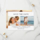 Design moderno e fresco mostra três de suas fotografias. Duas fotos menores criam uma banda pelo centro do seu convite para salvar a data. Uma foto do tamanho do cheio cobrir a parte traseira inteira do cartão de data salvo. O texto da serifa de laboratório dá ao cartão sua vibração moderna e quadril. Todo o texto pode ser editado. Modelo muito fácil de usar.