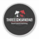 Um autocolante transparente com o logotipo da etiqueta de Três Cavaleiros e a sua publicação.