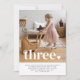 Um simples convite para o Terceiro Aniversário, com a sua própria fotografia e as palavras "três" sobre o topo, juntamente com um coração. Você pode editar todo o texto mais a cor do texto e o coração.